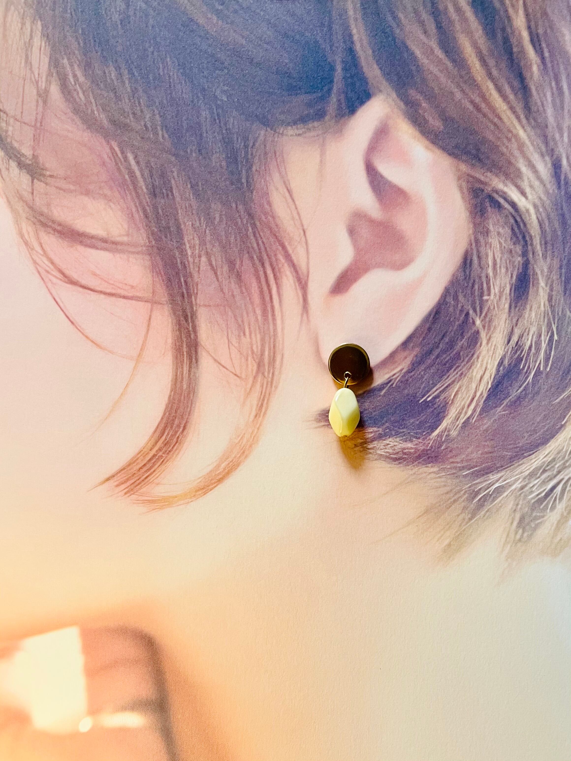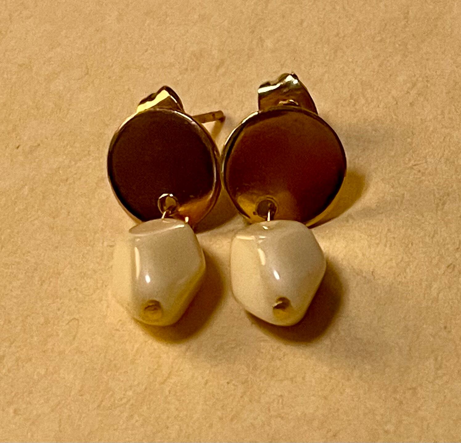 大ぶりなホワイトビーズと ゴールドラウンドが揺れる上品なピアスです。 お出かけのちょっとした彩りにいかがでしょうか♪