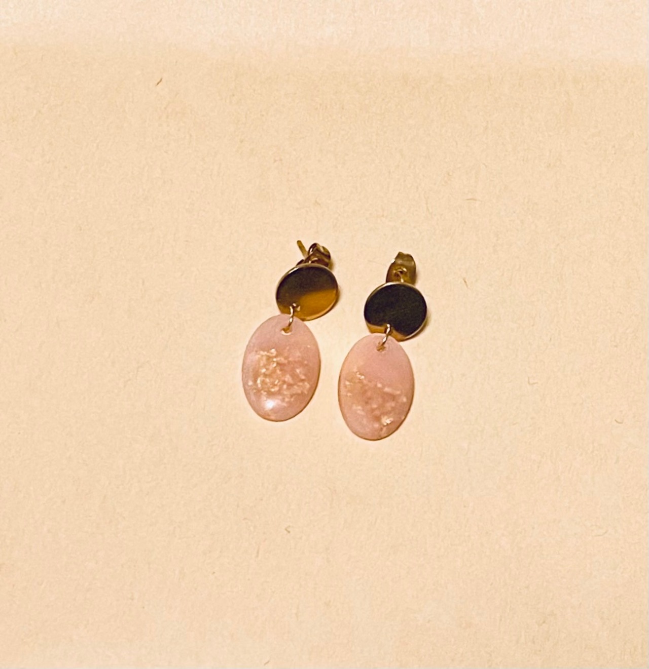 くすんだピンクレジンに閉じ込めた金色が華やかなピアスです。上品な装いのお供にいかがでしょうか♪